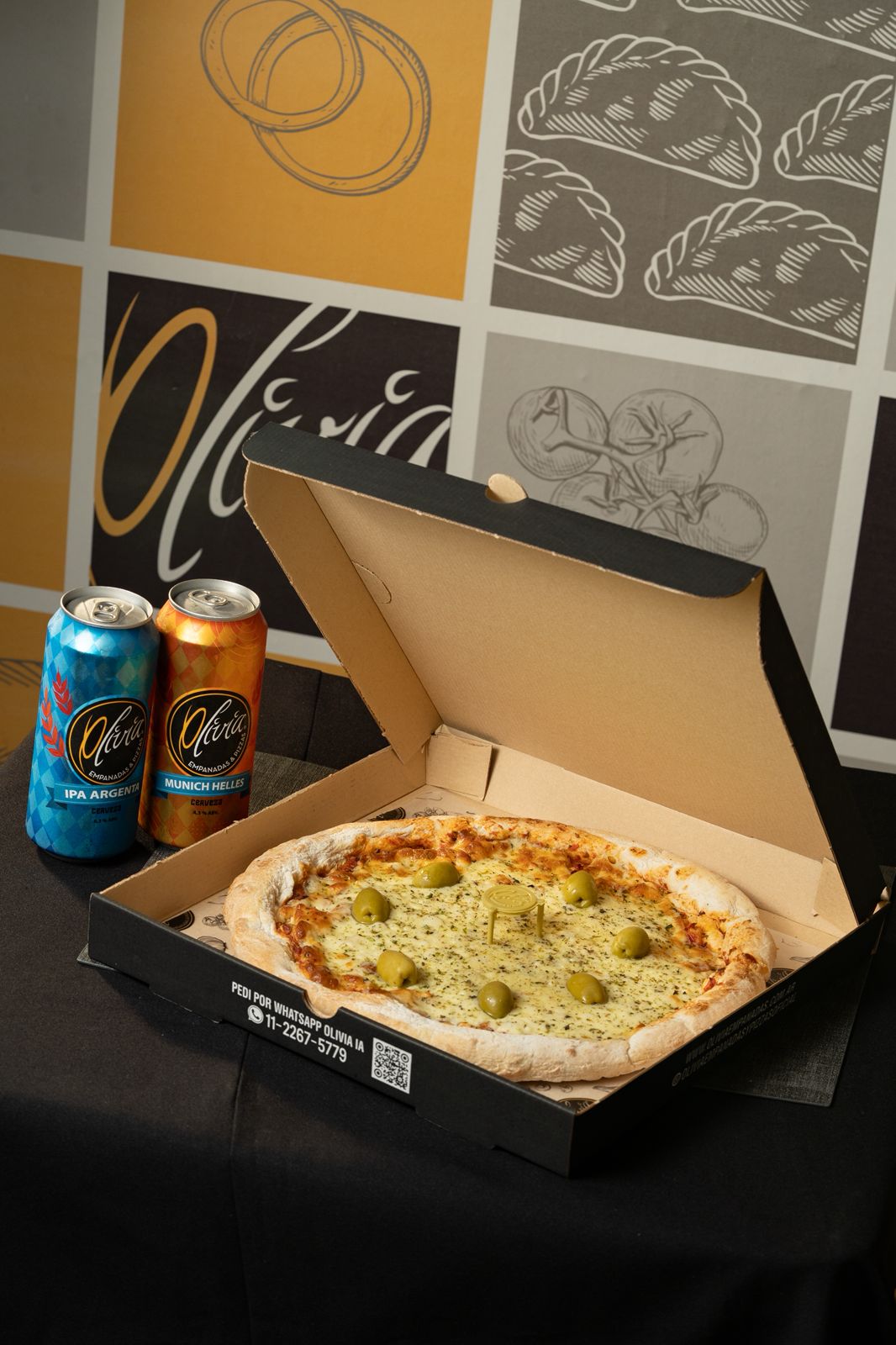 1 Pizza de muzzarella + 2 cervezas Olivia lata de 473cc