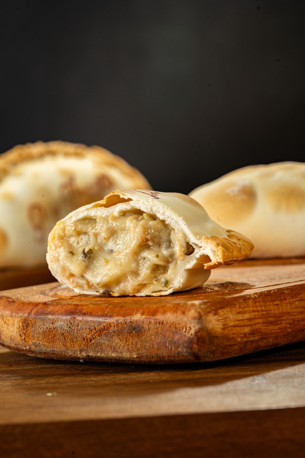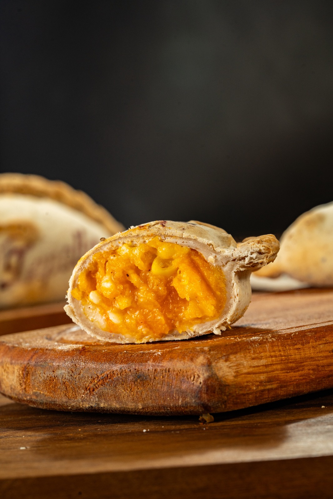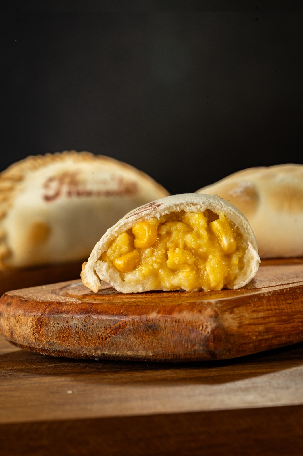 Choclo amarillo, cebolla, salsa blanca y queso reggianito.