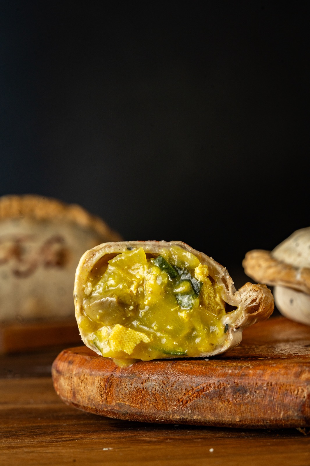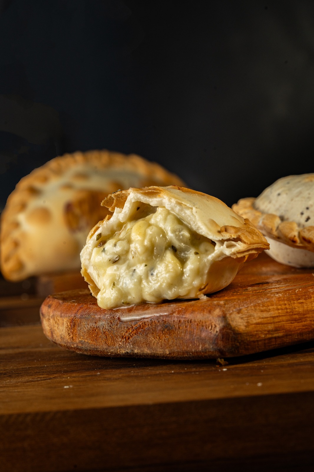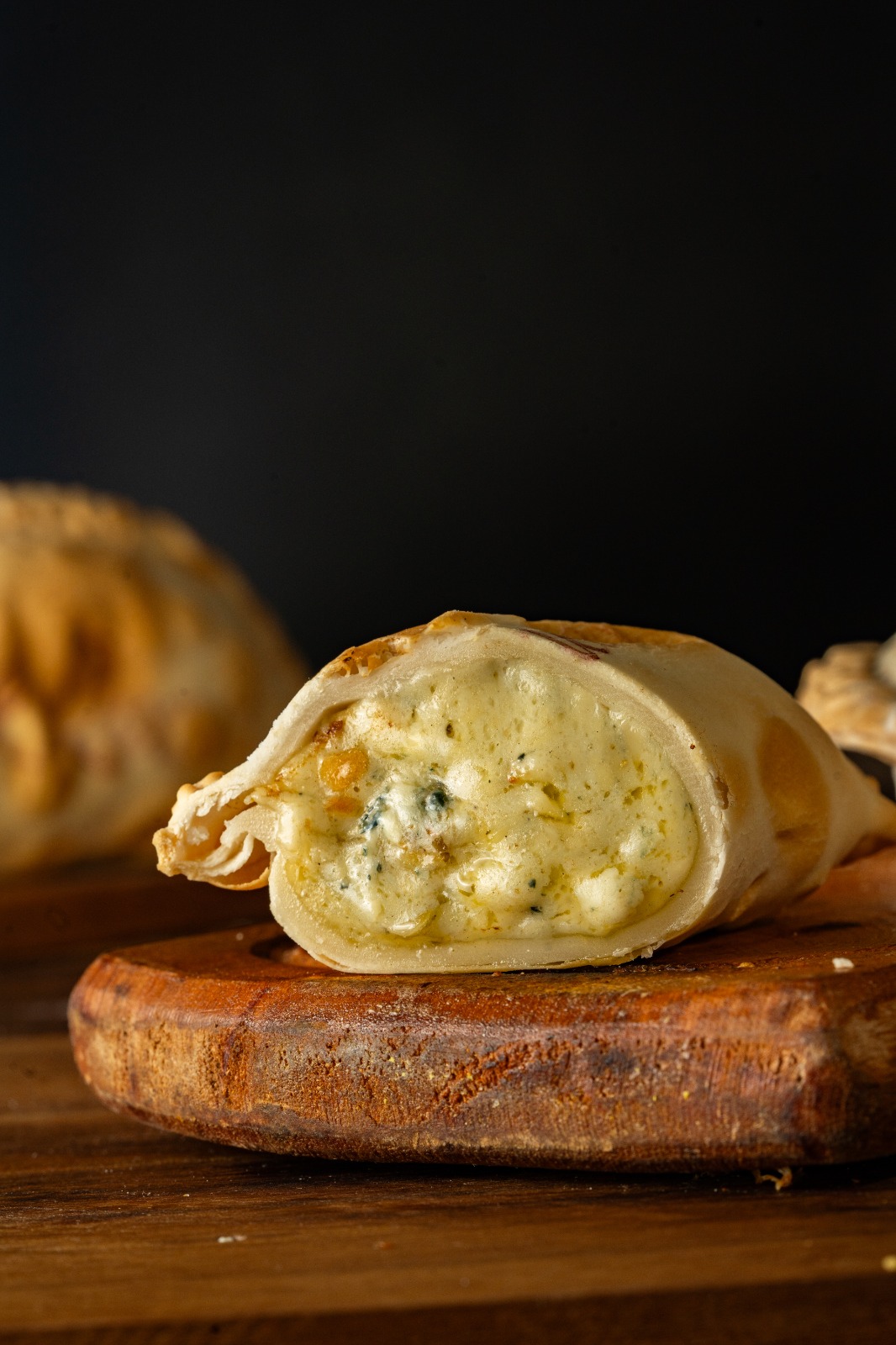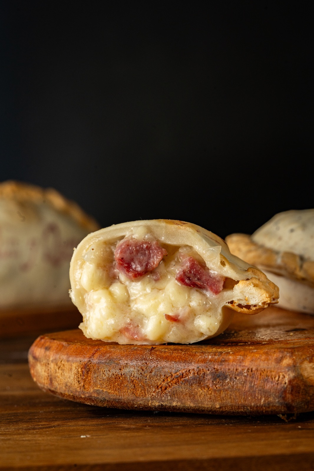 Choclo amarillo, cebolla, salsa blanca y queso reggianito.
