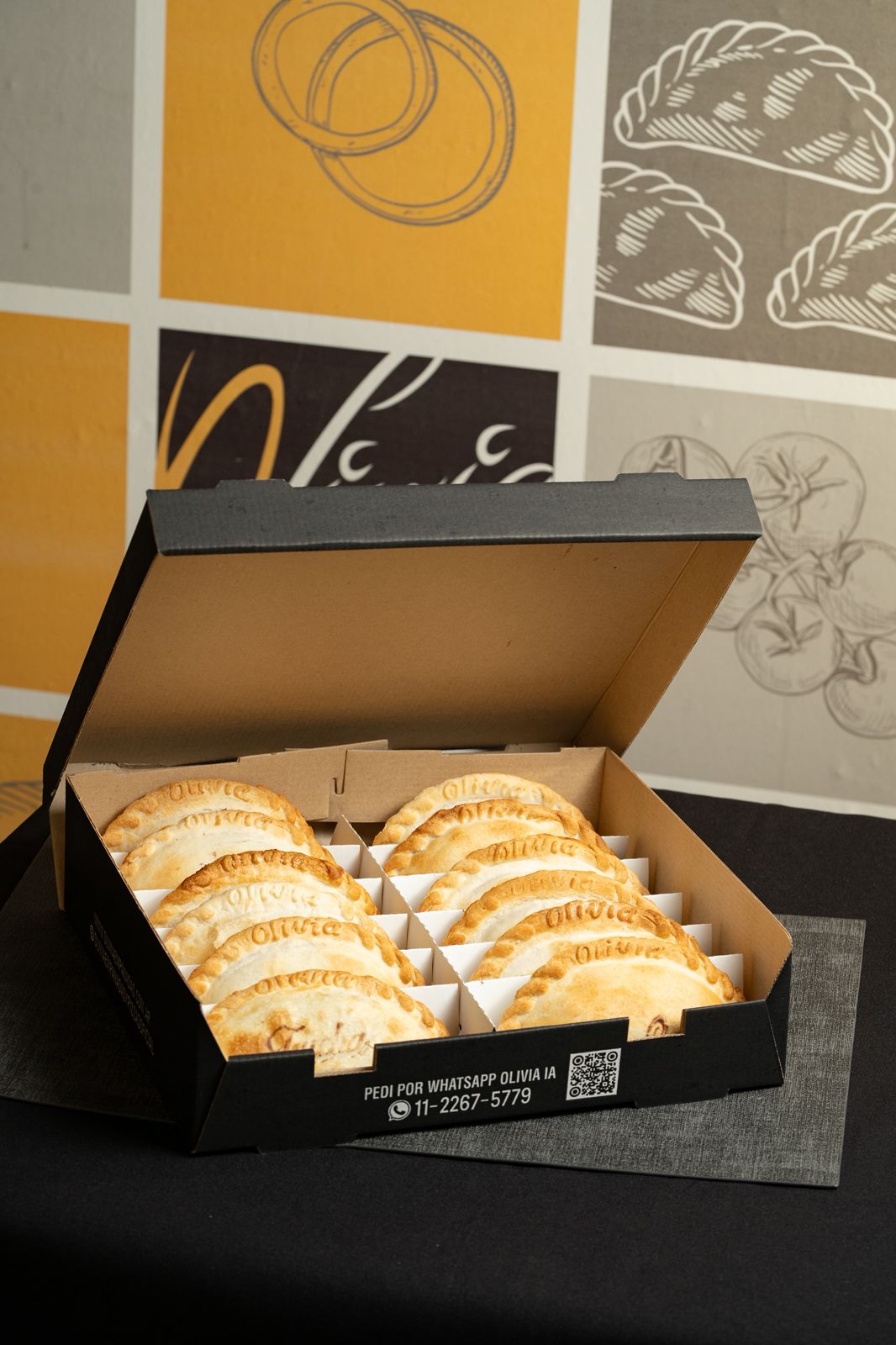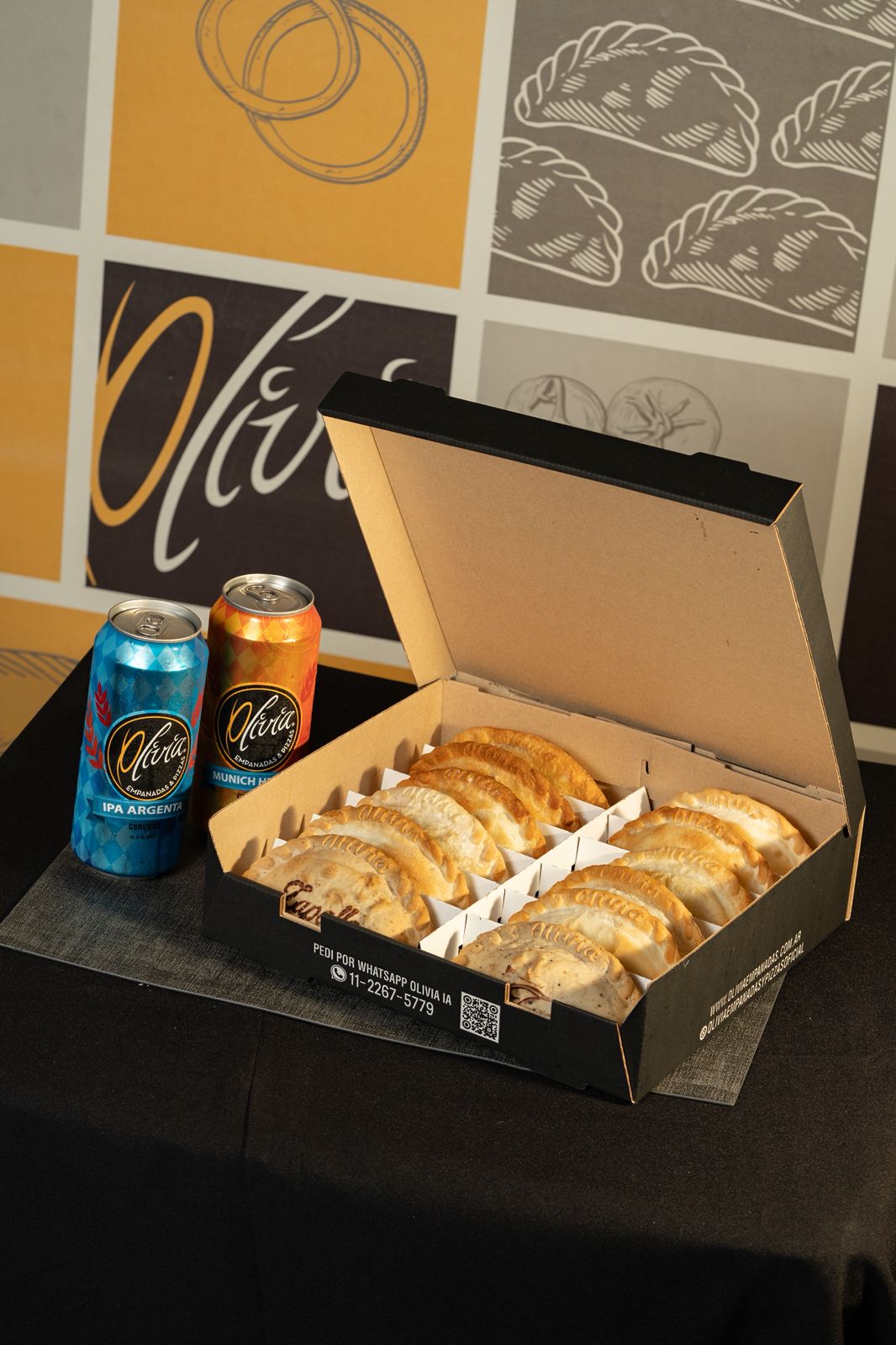 12 Empanadas + 2 Cerveza Olivia lata de 473cc