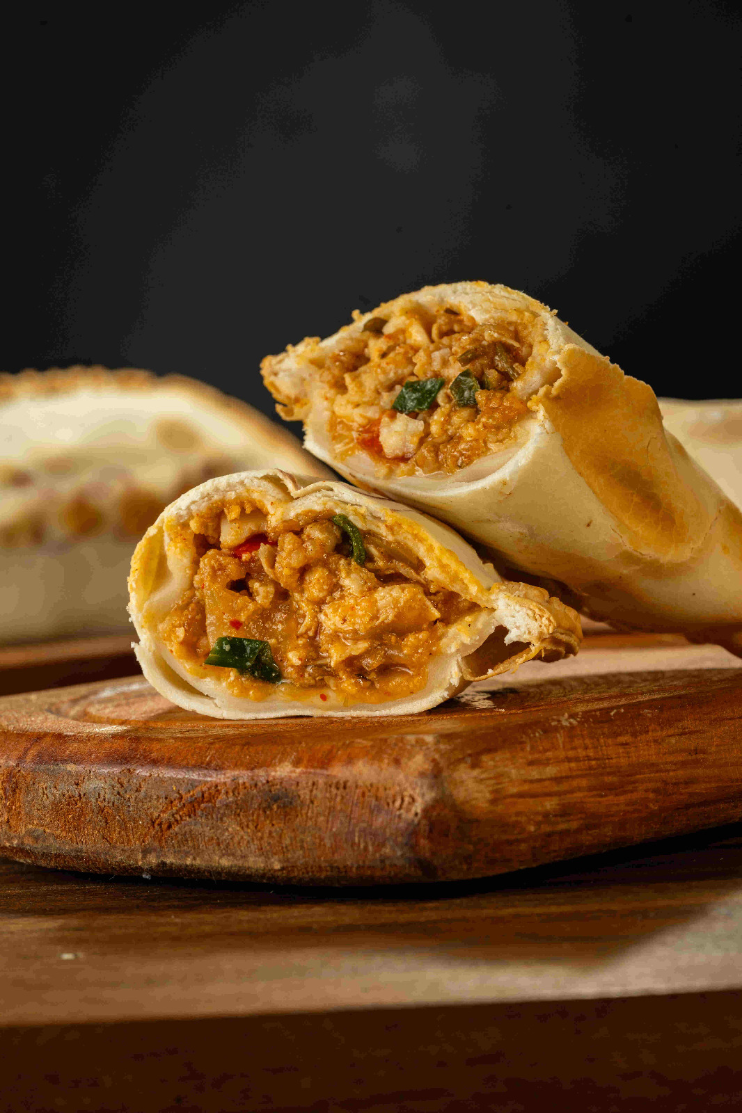 Pollo, cebolla, huevo, verdeo, morrón rojo