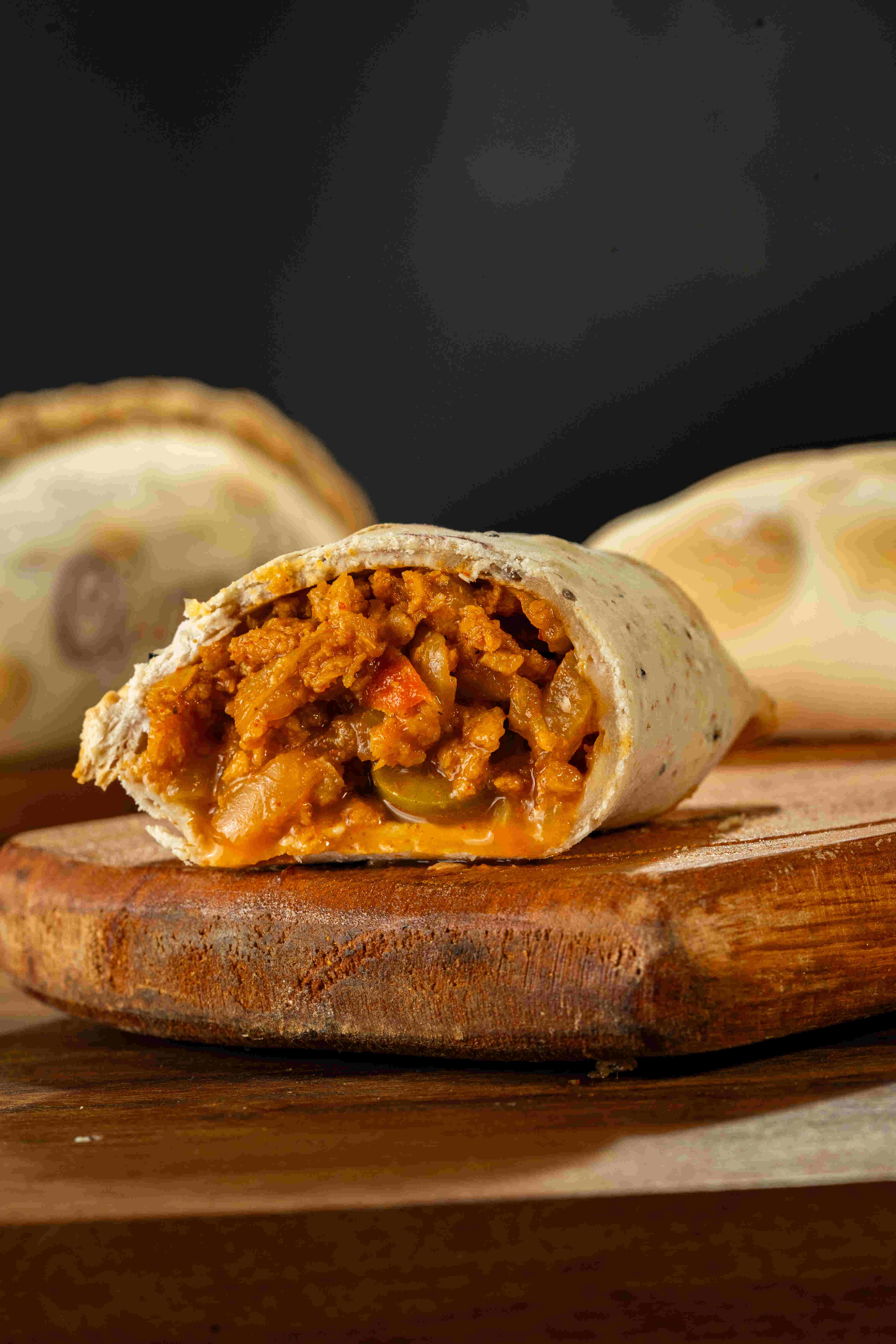 soja texturizada, verdeo, morrón rojo y verde, cebolla, aceitunas negras y verdes, aceite de oliva