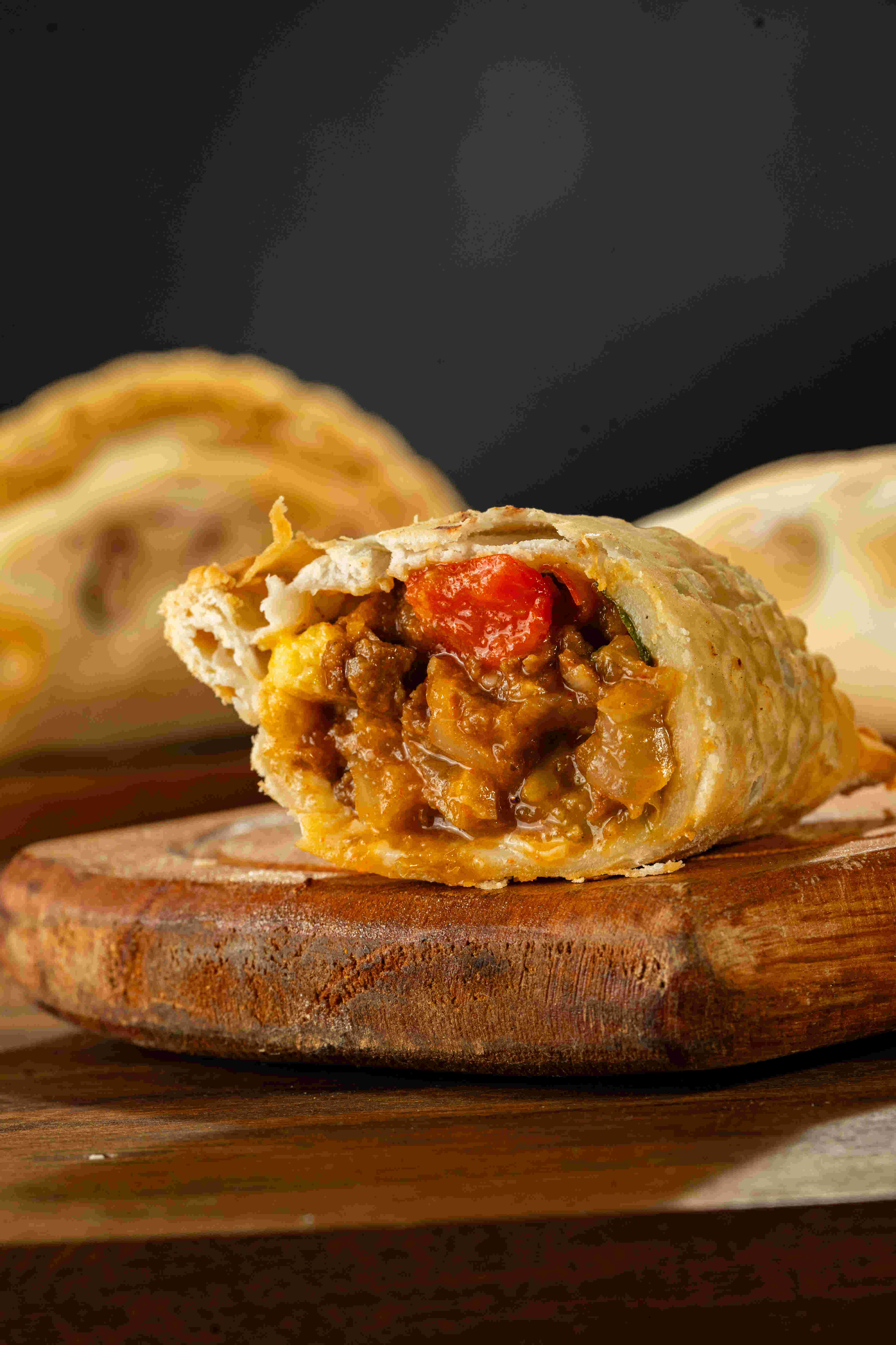 Carne cortada a cuchillo, cebolla, verdeo, aceitunas verdes, pimentón, huevo duro