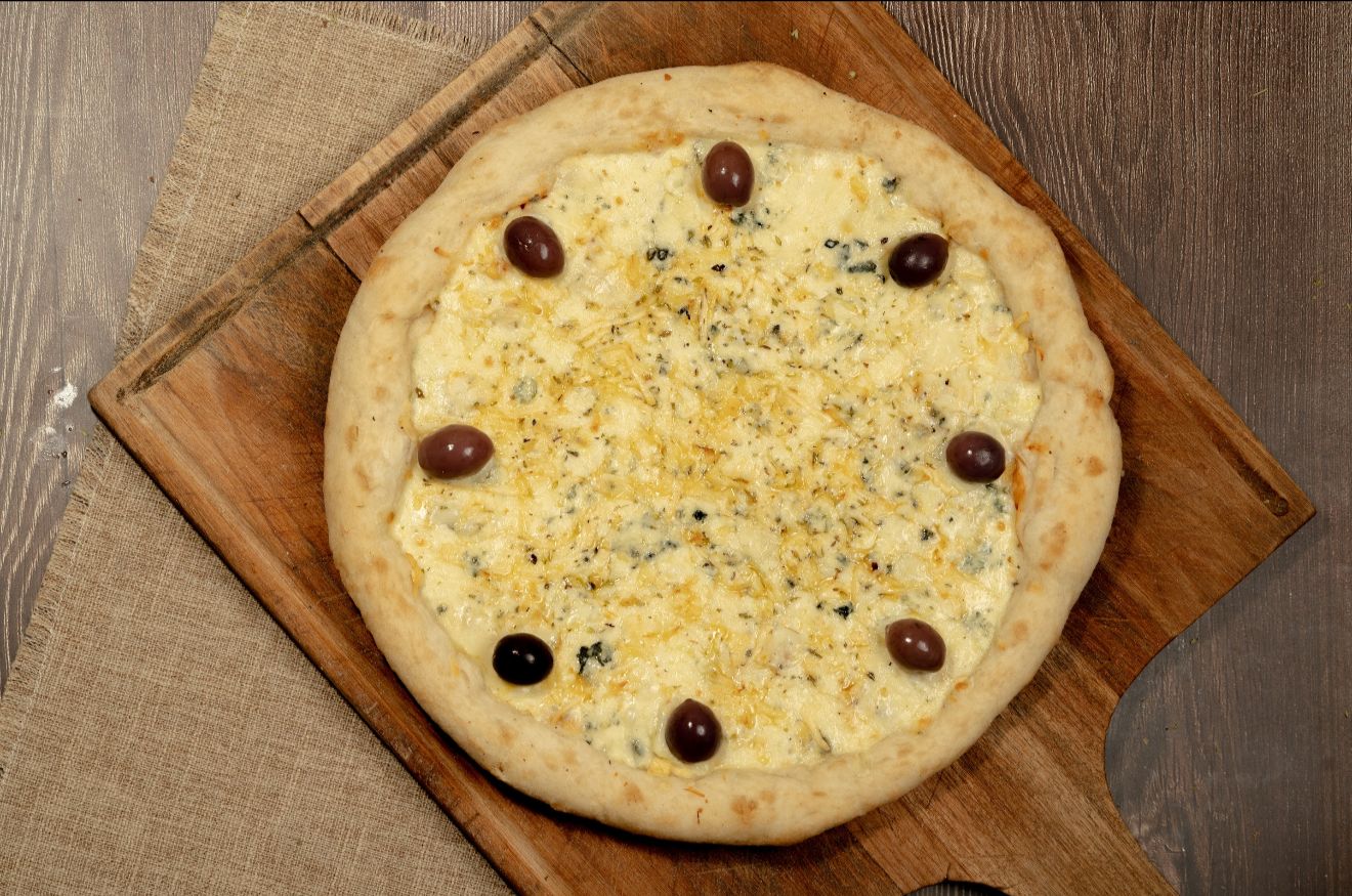salsa, muzzarella, pategrás, sardo, roquefort, orégano, aceitunas